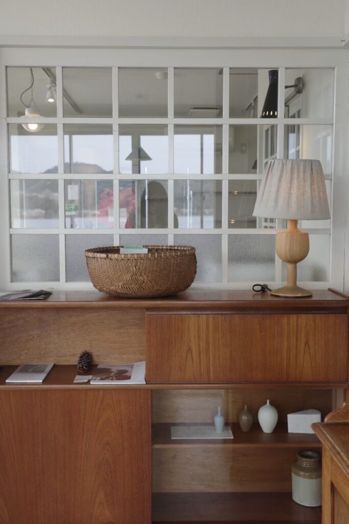 店内に入ると、一面の大きな窓から東郷湖畔の景色が広がっています。この静かな水面を眺めていると、この平和な時間がどこまでも続いていく気がします。穏やかな海や湖には、気持ちを落ち着かせる、精神的な浄化作用があるように思います。大切な友人と訪れるのはもちろん、一人でぼーっとするにもうってつけの場所です。