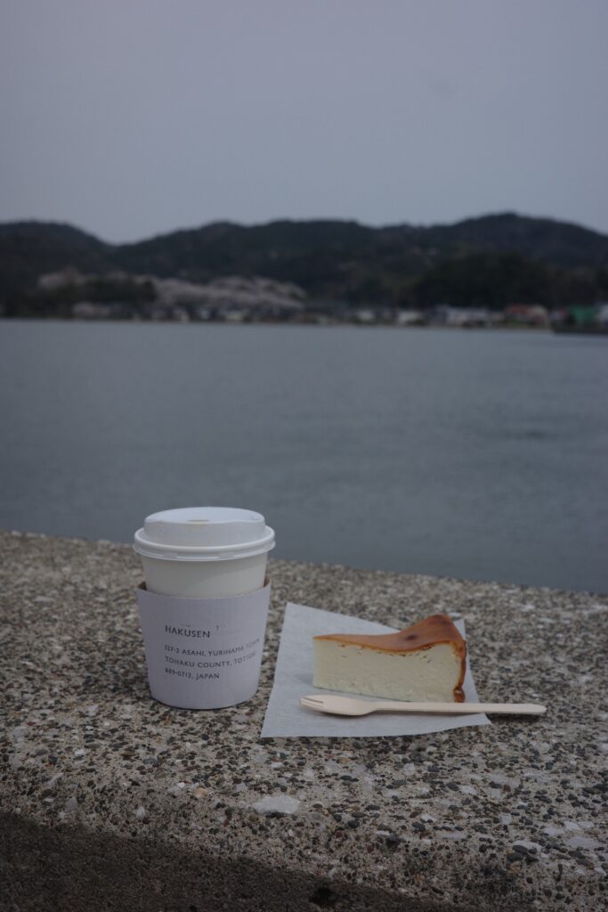 東郷湖畔に浮かぶように建っているカフェ「HAKUSEN」。ドライブの休憩がてら、朝のHAKUSENを訪れました。